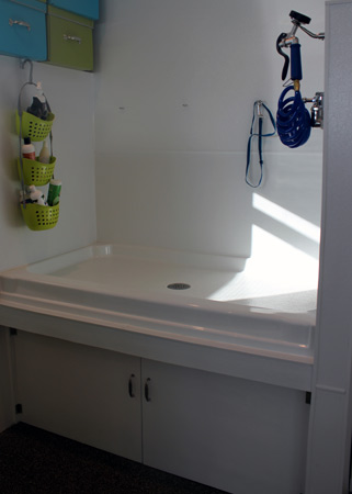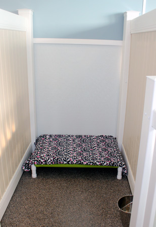 Each suite has it's own cot and comes with soft, fleece bedding as well so your dog has somewhere comfortable to come back and sleep after their play time with the other dogs. If you'd prefer to bring your own bedding from home, that is fine too! We also have a raised wash tub and can give your dog a bath before pick-up if requested so they'll come home smelling fresh and clean!